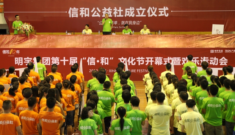 2012年9月,第十屆“信和”文化節,明宇員工自發組織成立了公益社團——“信和”公益社,每一位明宇員工都自動成為公益社社員,公益社以“快樂公益,人人參與”為倡導,鼓勵明宇員工“從小事做起,從身邊事做起”,積極踐行微公益,傳播“信和”公益精神。